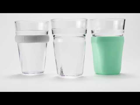 Vi har lagt til ekstra grep slik at glasset er lettere å holde i og glipper ikke ut av hendene. Vi endret også materialet fra glass til høykvalitets plast med et krystallklart utseende. Koppen har også fått tilbehør for å gi koppen enda mer grep og et stilig utseende. Den spesialdesignede innrykket og den vridde formen på koppen gjør det så mye mer behagelig å holde den i hånden uten å skli. Vi utviklet også tilbehør for enda mer grep, kalt Cup Sleeve og Cup Ring.